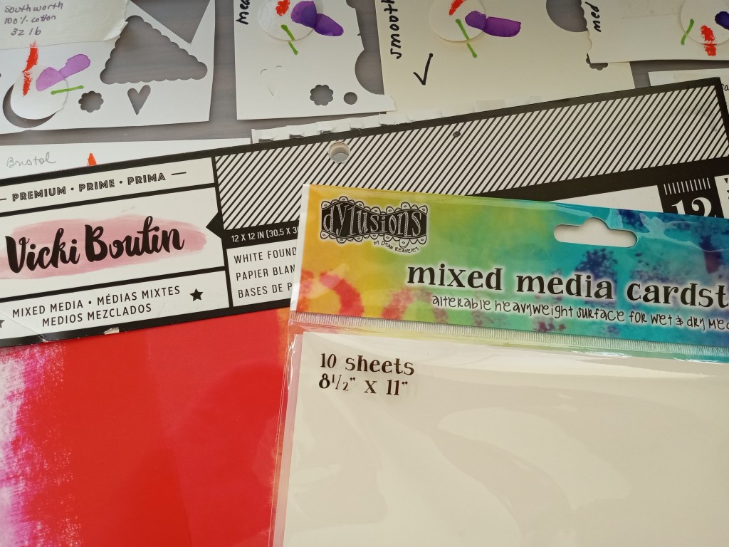 The smooth samples were: Strathmore Bristol smooth, Ranger Tim Holtz Distress Heavystock, Ranger Dylusions mixed media, and American Crafts Vicki Boutin mixed media.